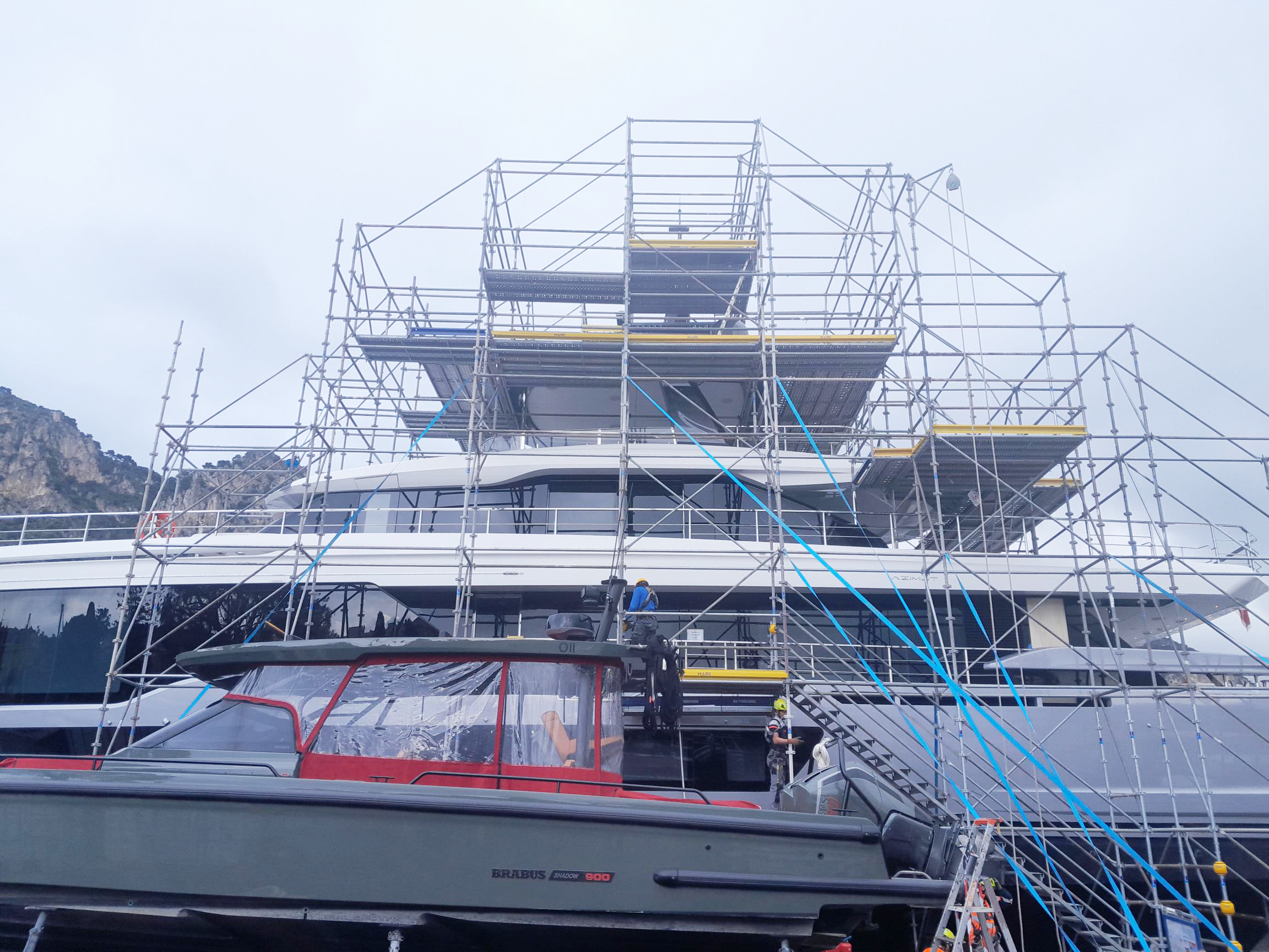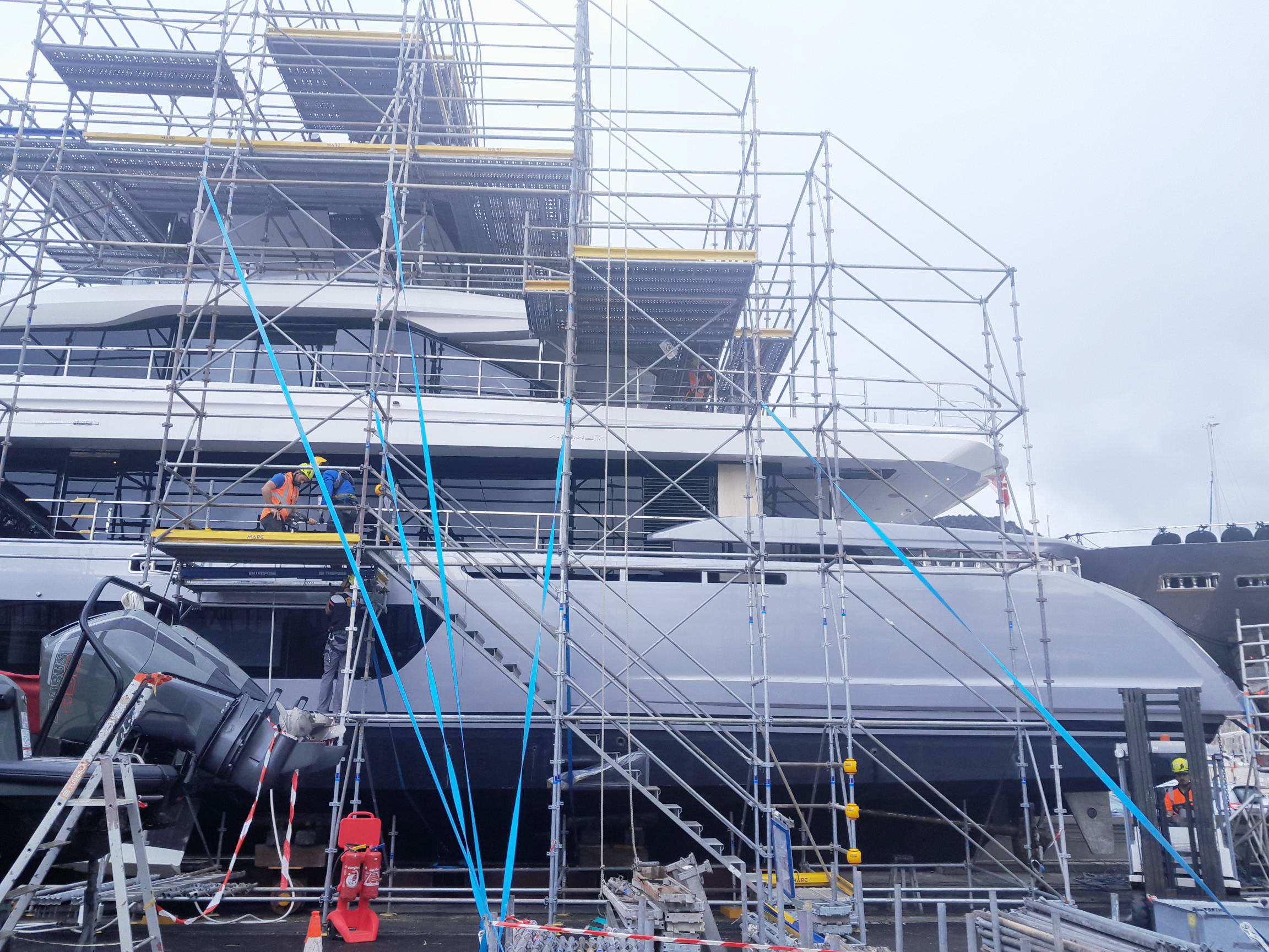 La semaine dernière, les équipes d’échafaudeurs de MARC SA ont été mandatées par Monaco Marine pour réaliser une prestation technique au port de Beaulieu-sur-Mer (06) : le montage d’une structure en échafaudage pour réaliser la peinture d’une partie d’un bateau.