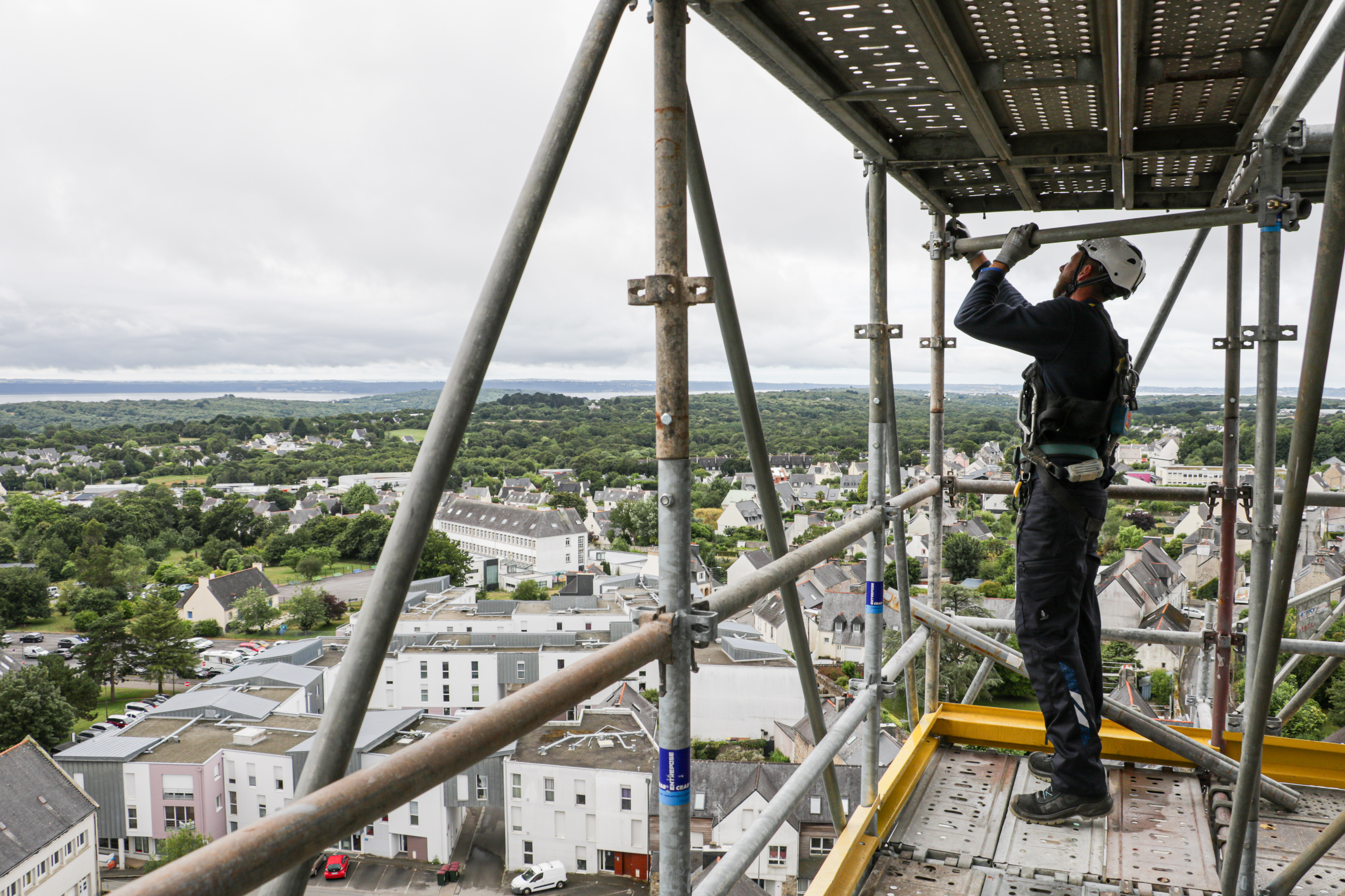 Ce chantier complexe du fait de l’architecture du clocher, a nécessité 55 tonnes de matériel et 1000 heures de montage en 6 semaines.