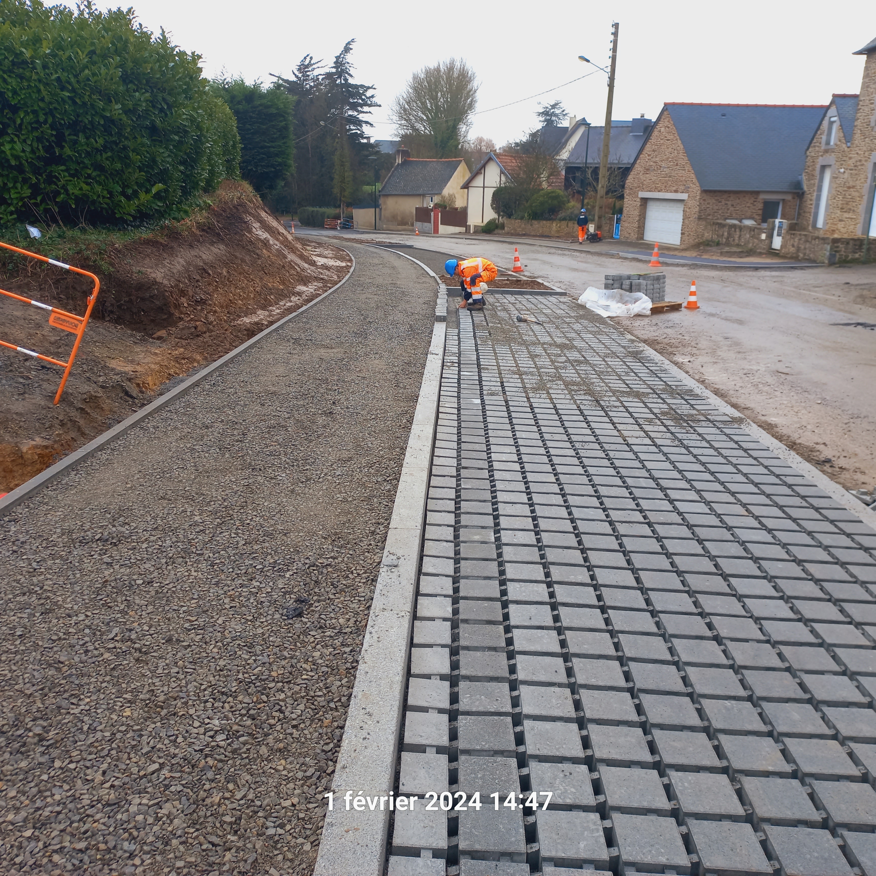 - pose de pavés drainants sur les places de stationnement,