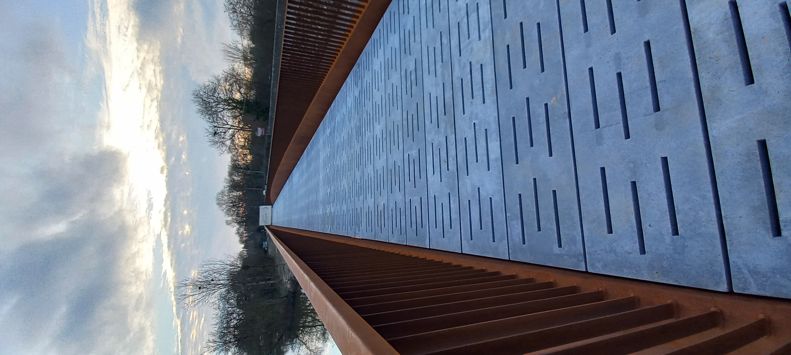 - Passerelle en acier CORTEN de 55 mètres de long sur 3 mètres de large, un matériau durable et esthétique,