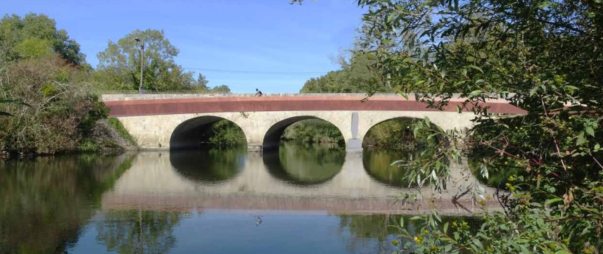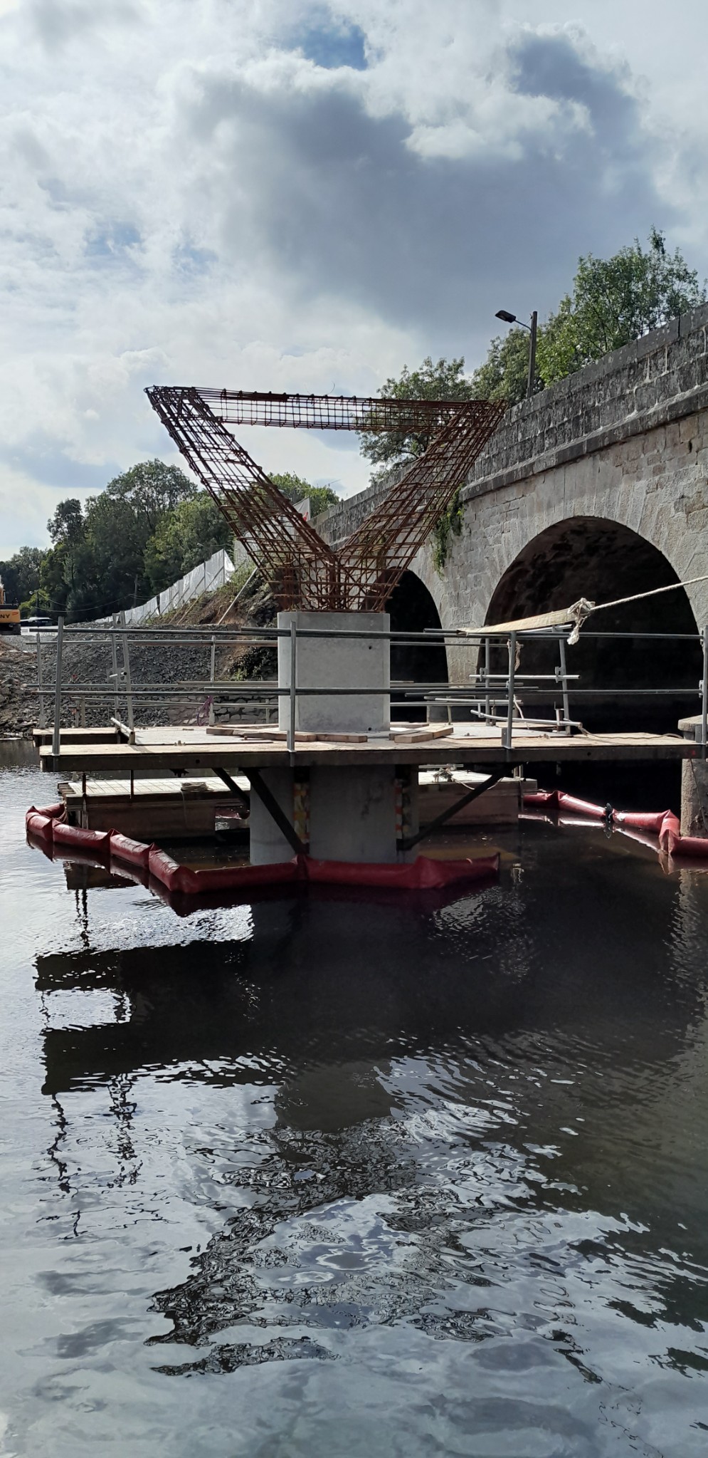 - Appuis en béton armé avec une pile centrale architecturée, garantissant la stabilité de l’ouvrage,